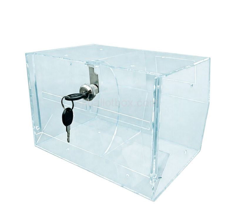 Custom translucent blue acrylic ballot box with divider, ideal for elections, voting events, raffles, and suggestions. Made from durable high-quality acrylic with a clear structure for visibility. The internal divider separates ballots or forms efficiently. Custom sizes, colors, and logo printing available.
