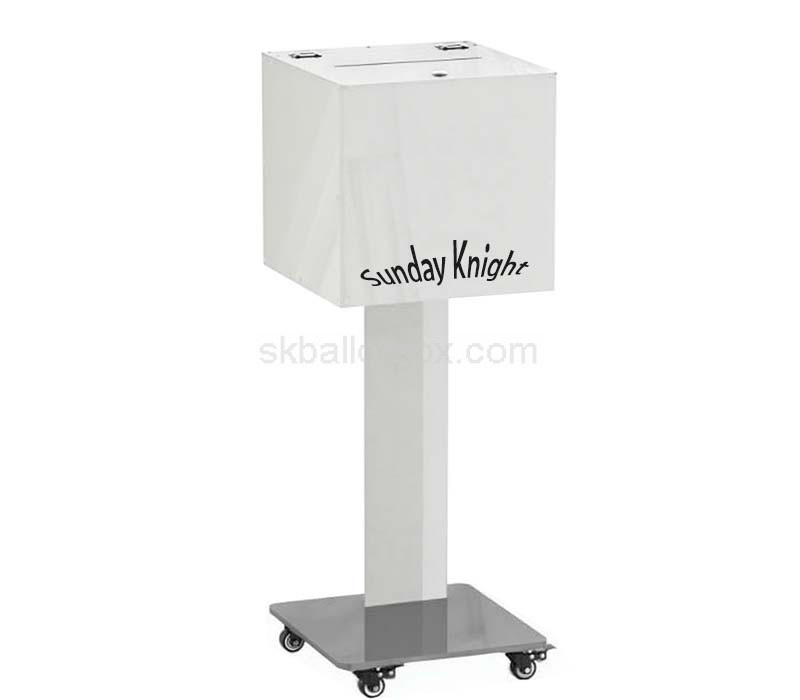Custom white acrylic public feedback collection with wheels – Sleek, mobile, and designed for high-traffic areas, this feedback box is ideal for public spaces and events. Enjoy worry-free delivery with all taxes, duties, and fees included. One simple price gets it to your door in the US, Europe, and select Asian countries.