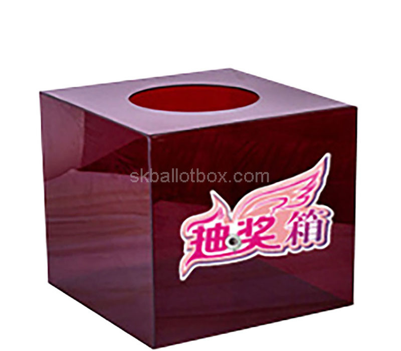 Elevate your retail promotions with this sophisticated dark red acrylic raffle box. Perfect for in-store campaigns, customer appreciation events, and loyalty programs. Features a secure locking mechanism and smooth ball rotation. Bulk pricing available for retailers and distributors – request quote now!