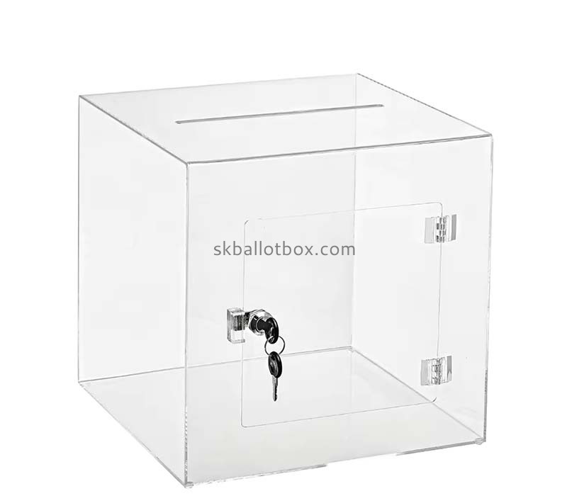 Introducing our custom clear acrylic suggestion box with a secure lock and key mechanism. Crafted with premium-quality acrylic, this sleek and transparent design allows for easy visibility of contents while maintaining durability.