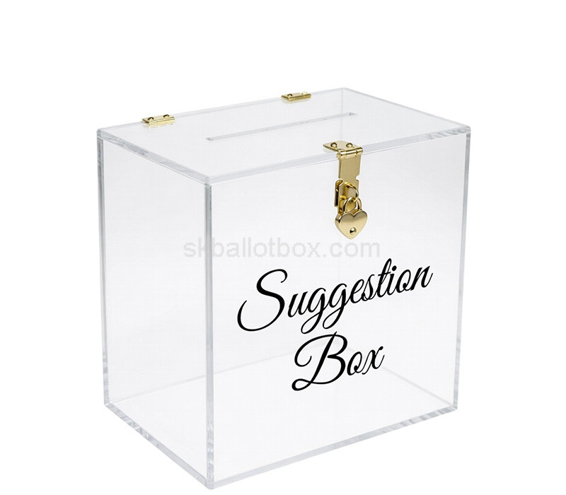 Collect valuable feedback effortlessly with this custom plexiglass events suggestion box. Designed for conferences, workshops, and special occasions, it provides a secure and stylish way for attendees to share ideas. Durable and transparent, it ensures visibility of submissions while complementing any event setup with a professional, modern touch.