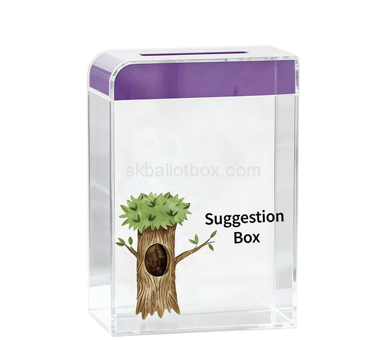 Add a modern and functional touch to your space with this custom plexiglass hanging suggestion box. Ideal for offices, retail stores, or events, it easily suspends for accessibility while securely collecting feedback. Its transparent design ensures visibility of submissions, combining practicality, durability, and stylish presentation for any environment.