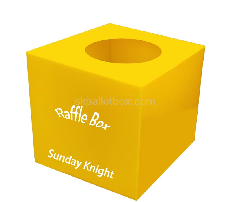 -Your shipping cost includes all taxes and fees, ensuring smooth delivery to the US, Europe, and select countries in Asia. Custom yellow plexiglass raffle box, bright and durable for promotions and events. Ideal for retail settings, raffles, and giveaways. Available exclusively for wholesale orders. Vibrant design for maximum attention.