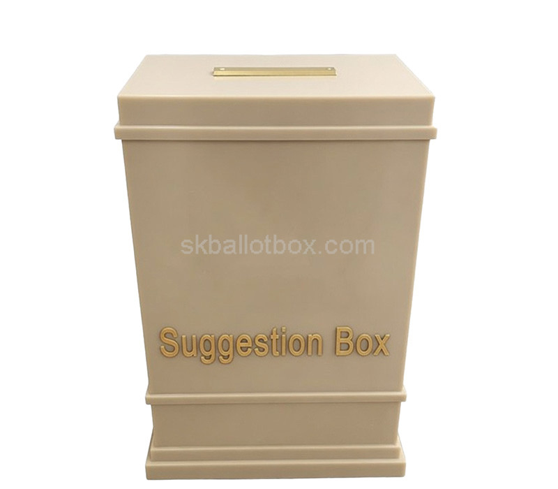 Elegantly designed custom plexiglass suggestion and feedback collection box for retail, offices, hotels, and events. Fully customizable in colors, shapes, and sizes. Durable, transparent, and modern. Perfect for gathering valuable customer input. Wholesale only.