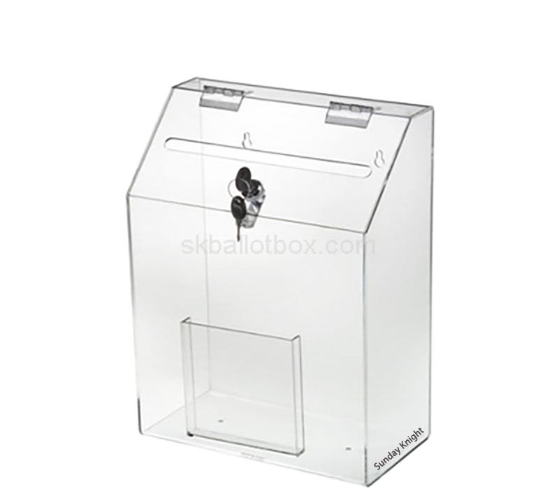 This wholesale custom acrylic suggestion box features a convenient notepad holder for easy access to writing materials. Ideal for collecting feedback, it combines functionality with a sleek design, making it perfect for businesses, events, and community spaces looking to encourage participation.