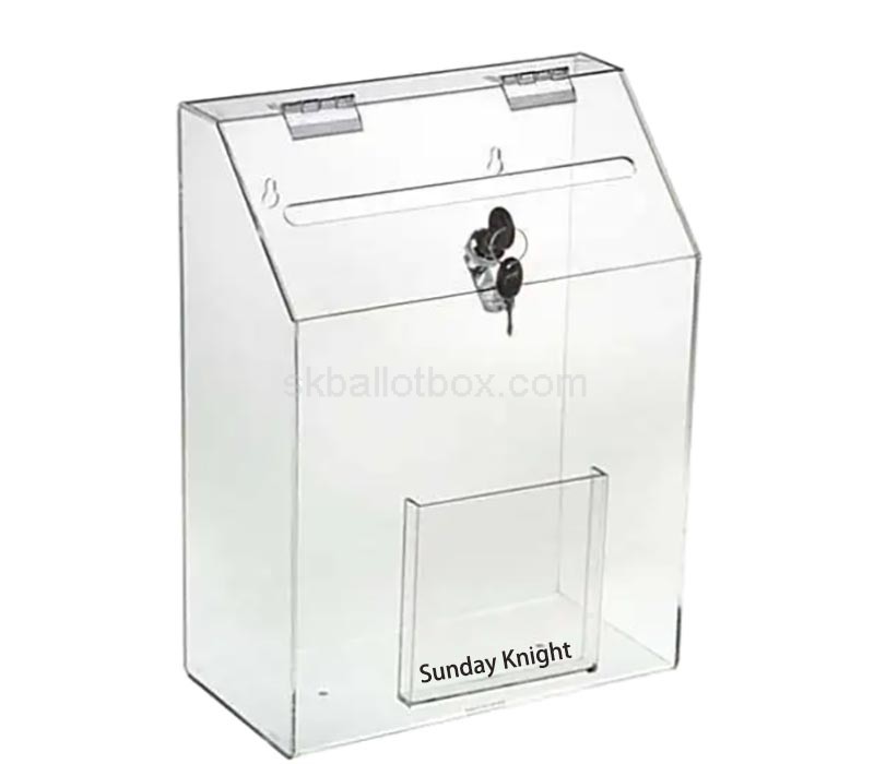 Wholesale custom acrylic wall ballot box with brochure holder BB-3042