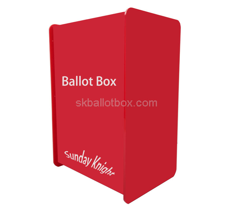 Wholesale custom red plexiglass meeting ballot box, perfect for secure and transparent ballot collection during meetings or events. Durable and stylish, this box ensures easy visibility and reliability, making it ideal for voting, feedback, or suggestions in professional settings.